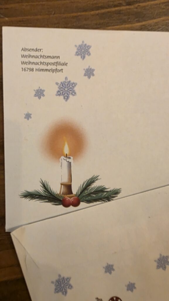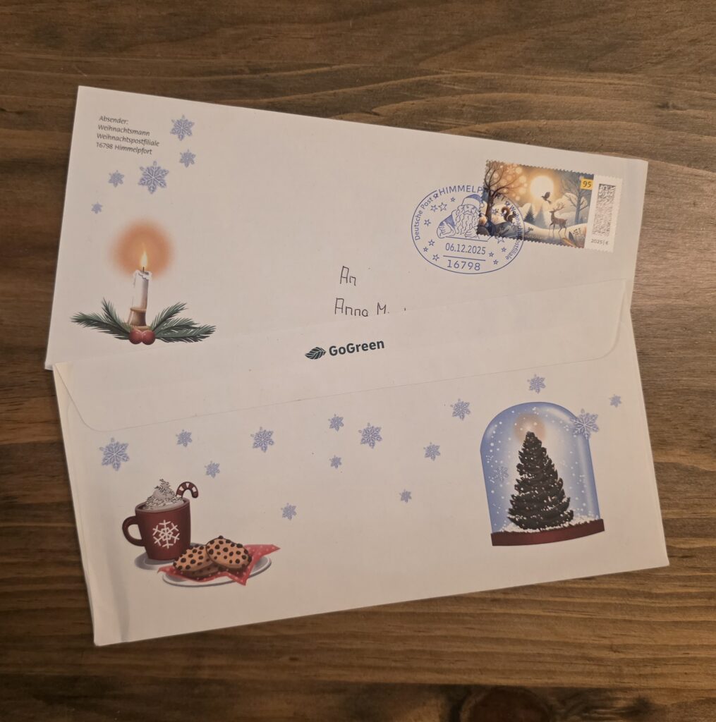 Die Mädels haben heute übrigens die Antwortpost vom Weihnachtsmann bekommen.