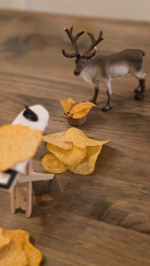 Obwohl ja eigentlich Plätzchenzeit ist, hat Tomte gerade Lust auf salziges. Allerdings mag er unsere Rifflechips nicht (er könnte sie dann ja auch einfach liegenlassen).