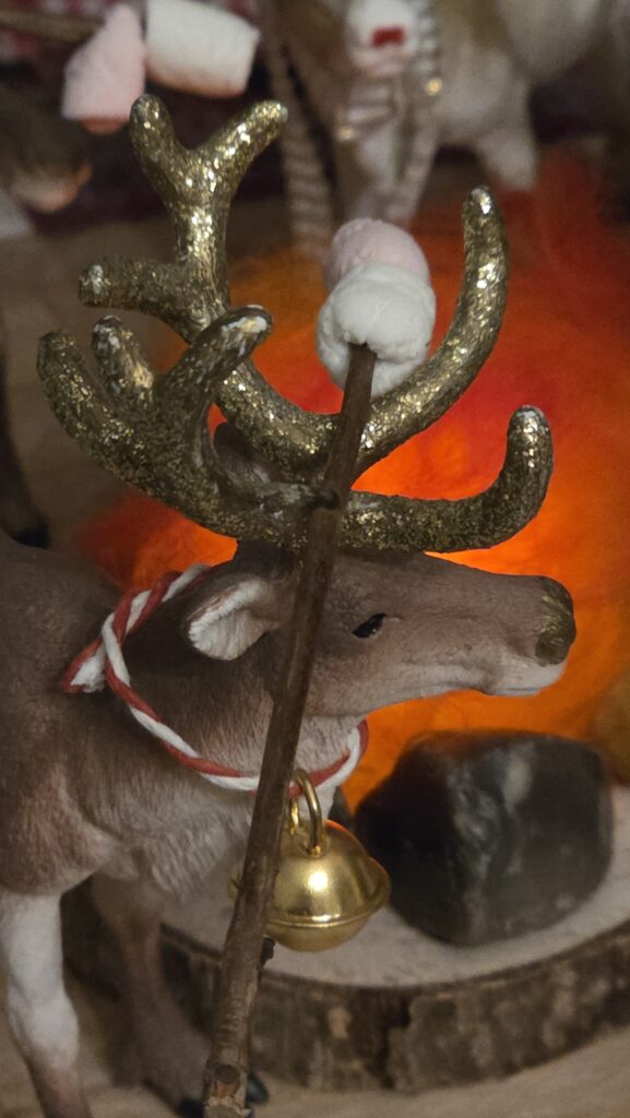 Dafür hat sich auf der Veranda was getan. Alle Rentiere (also auch Santas Schlittentiere die ja ganzjährig bei uns chillen) haben sich um ein Lagerfeuer platziert und haben ihre Zeit wohl mit Marshmallows Essen verbracht.