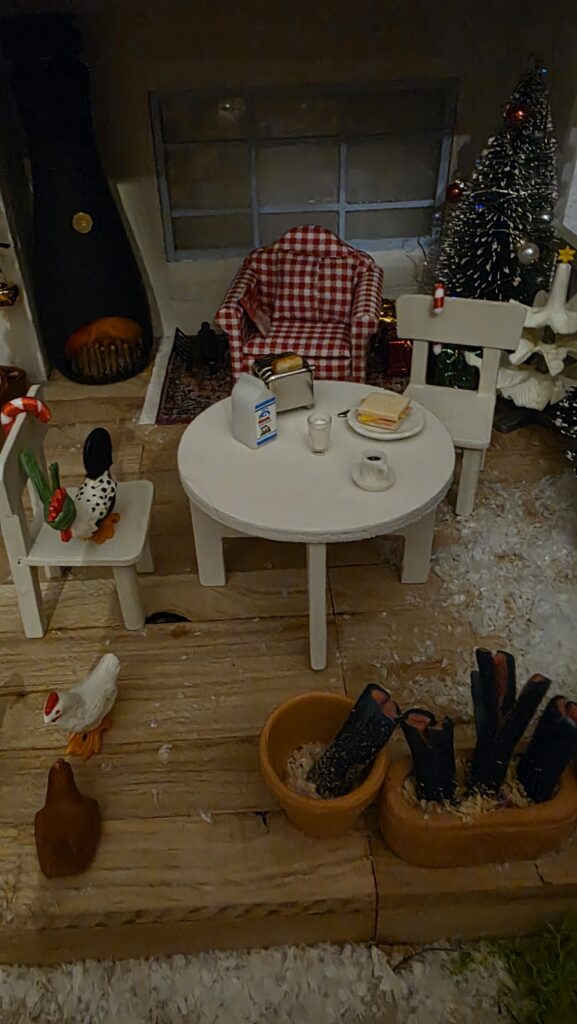 Sogar Tomte war ganz brav und hat ein gemütliches Weihnachtsessen am ersten Weihnachtstag veranstaltet. Da gab es auch keine Überraschungen oder sonstiges.